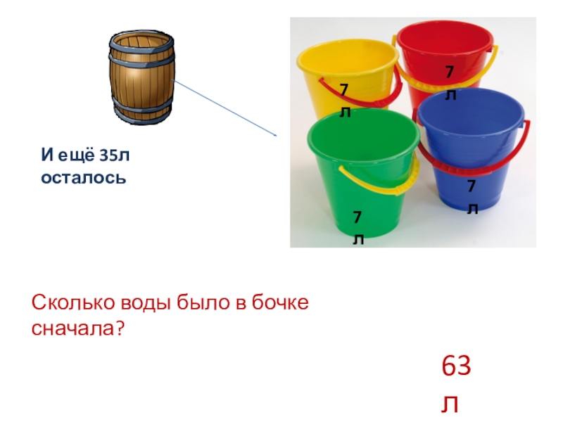 7л7л7л7лИ ещё 35л осталосьСколько воды было в бочке сначала?63 л