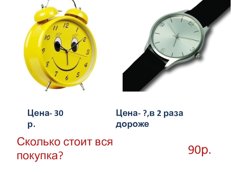 Цена- 30 р.Цена- ?,в 2 раза дорожеСколько стоит вся покупка?90р.