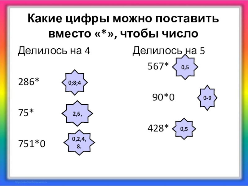 Если последняя цифра числа 5 или 0, то оно делится на 5.