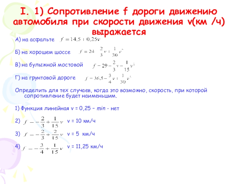 Определить для тех случаев, когда это возможно, скорость, при которой сопротивление будет наименьшим.