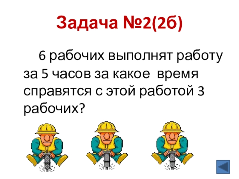 Задача №2(2б)   6 рабочих выполнят работу за 5 часов за какое время справятся с этой