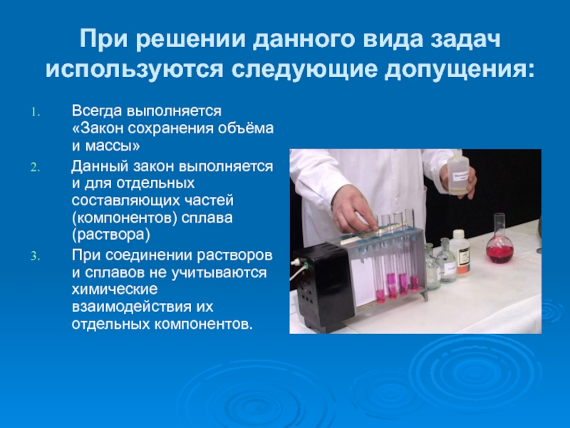 При соединении растворов и сплавов не учитываются химические взаимодействия их отдельных компонентов.