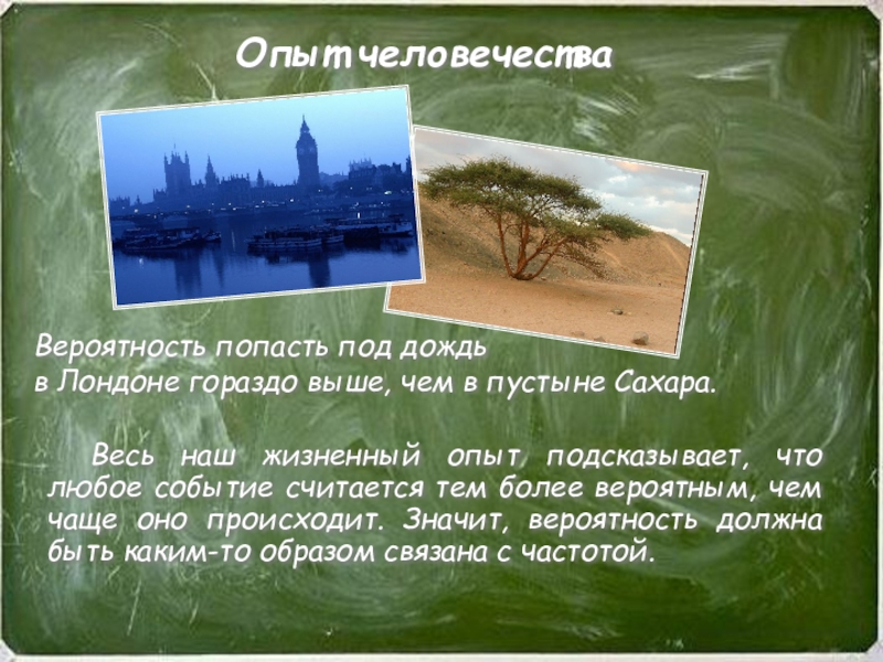 Весь наш жизненный опыт подсказывает, что любое событие считается тем более вероятным, чем чаще оно происходит. Значит, вероятность должна быть каким-то образом связана с частотой.