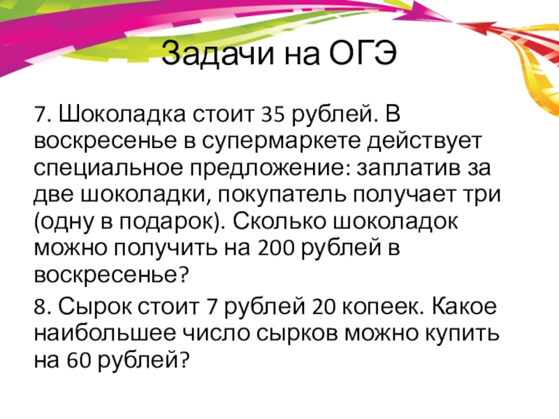 Слайд 7Задачи на ОГЭ