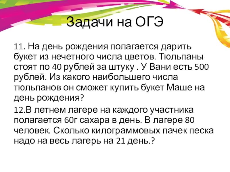 Слайд 9Задачи на ОГЭ