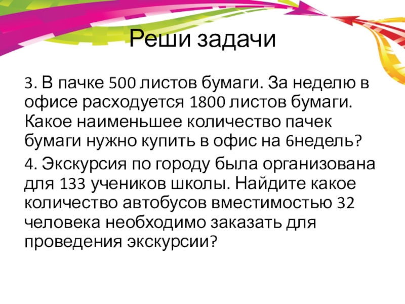 3. В пачке 500 листов бумаги. За неделю в офисе