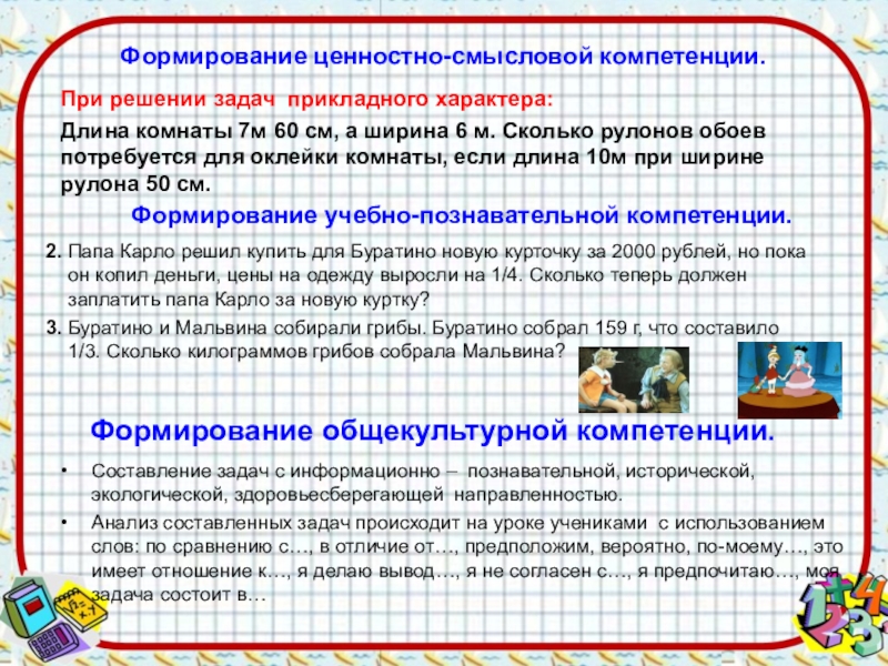 навыков применения предметных знаний из области математики в различных ситуациях позволяет учащимся решать возникающие жизненные проблемы