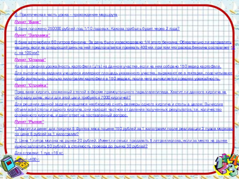 Решение прикладных задач на уроках, внеклассных мероприятиях и др.
