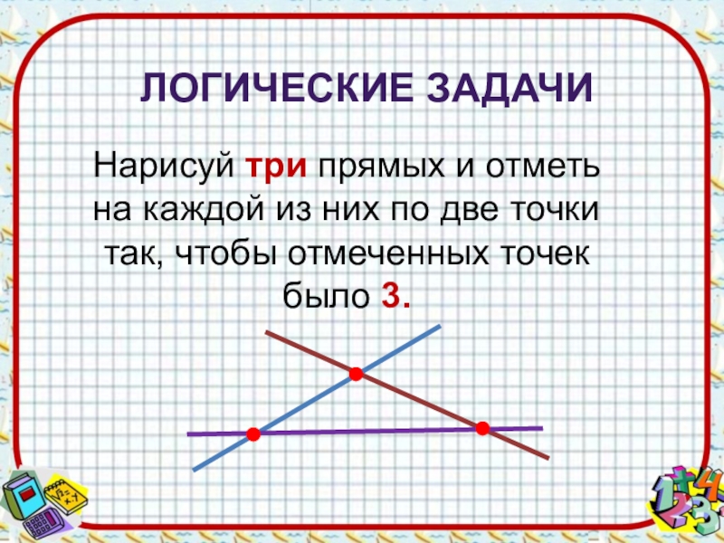 Слайд 26Нарисуй три прямых и отметь на каждой из них по две