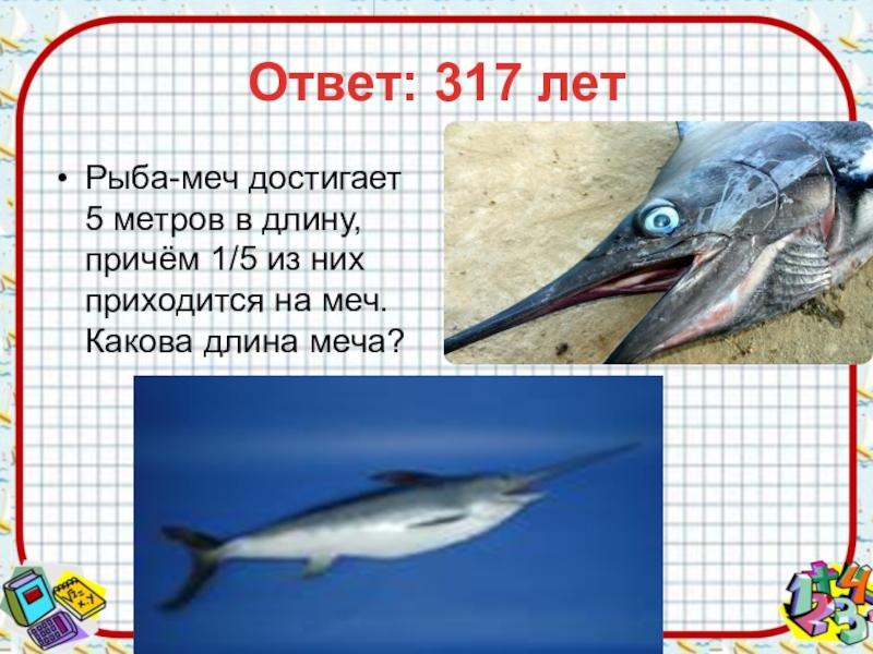 Рыба-меч достигает 5 метров в длину, причём 1/5 из