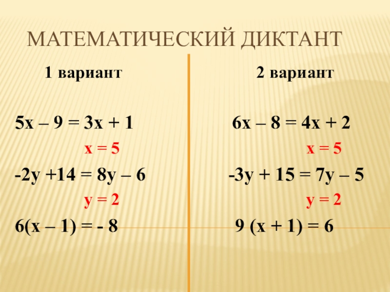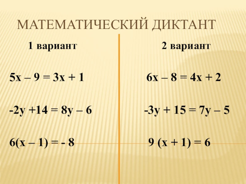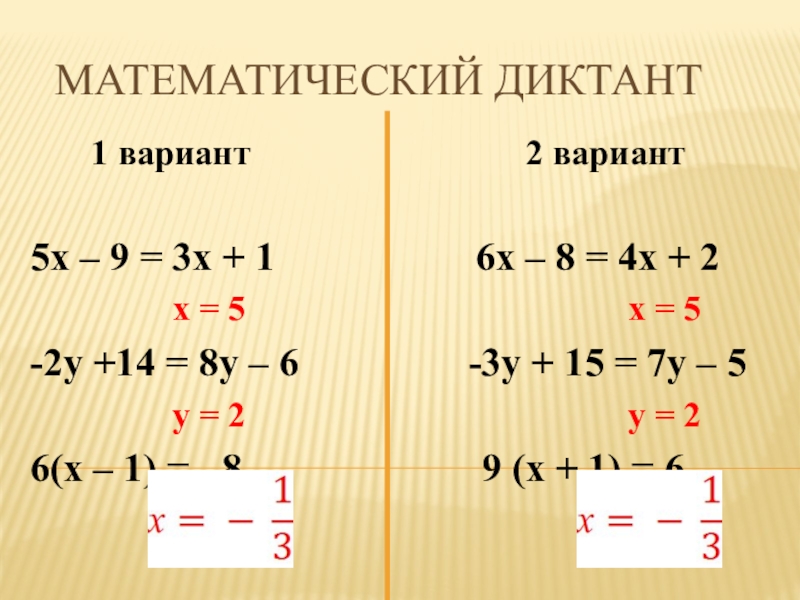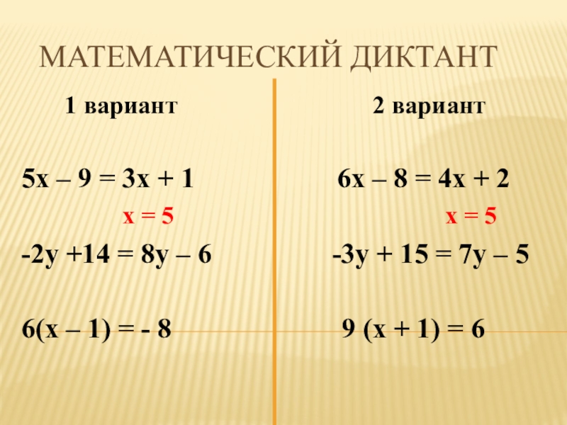 5х – 9 = 3х + 1 6х – 8 = 4х + 2