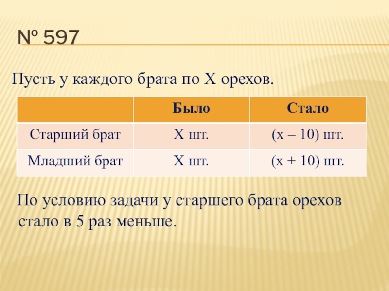 условию задачи у старшего брата орехов стало в 5 раз меньше.