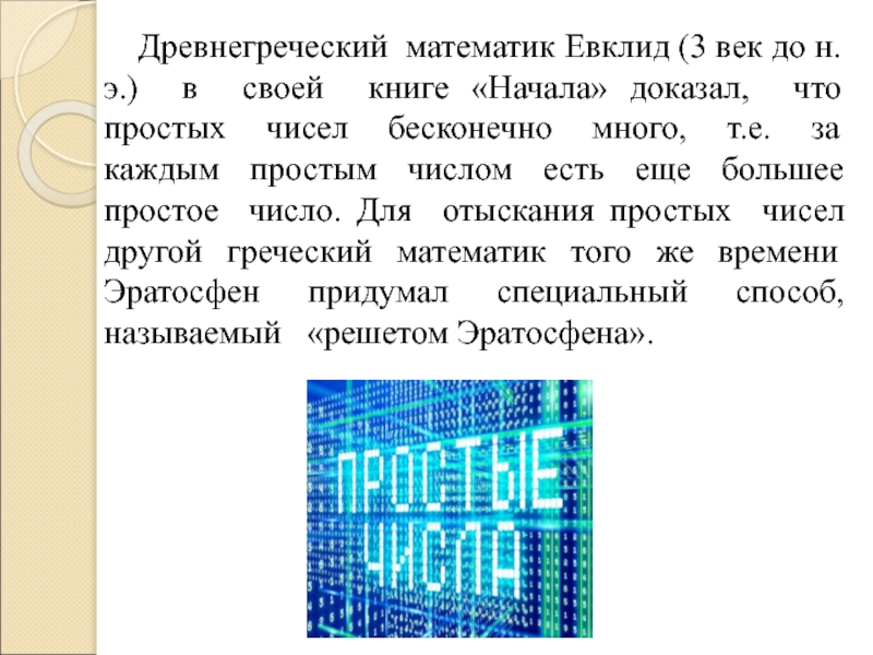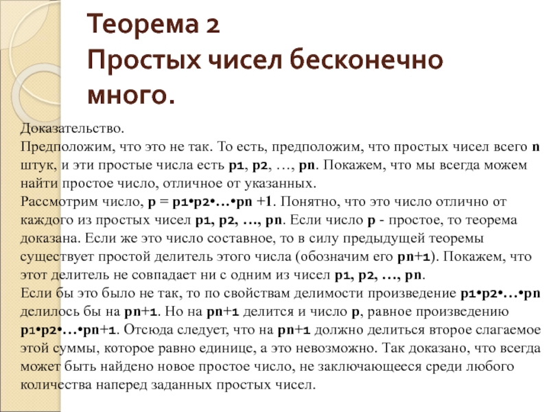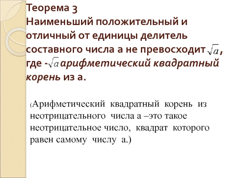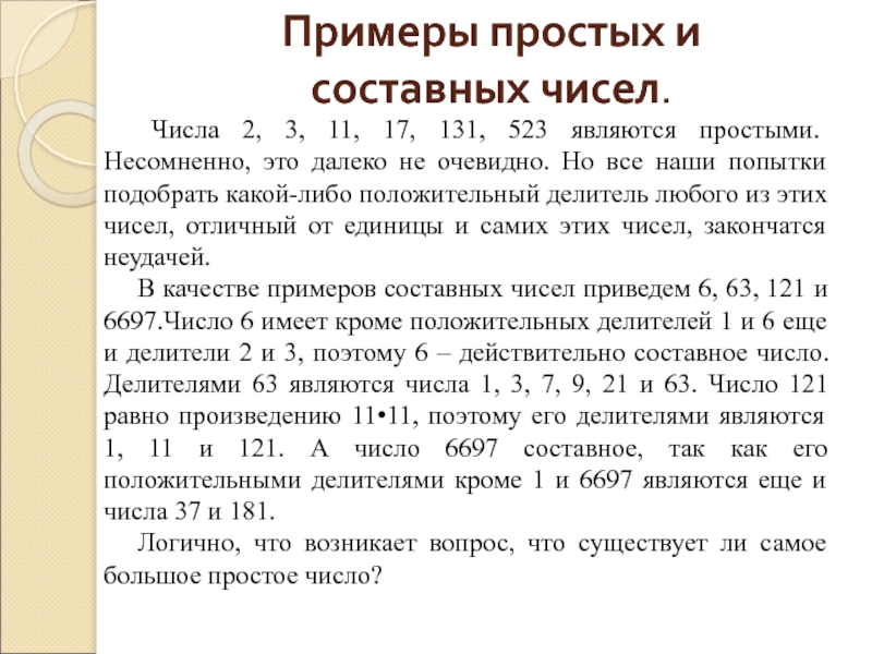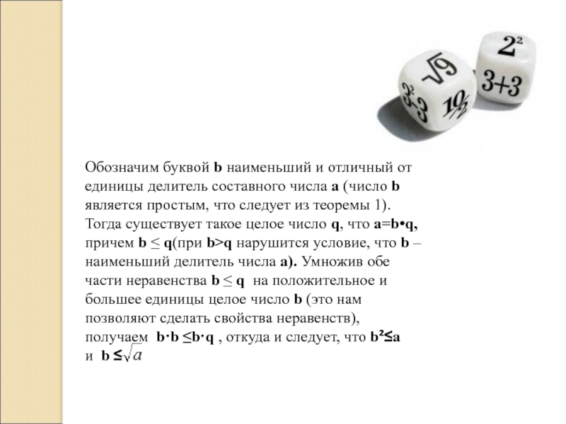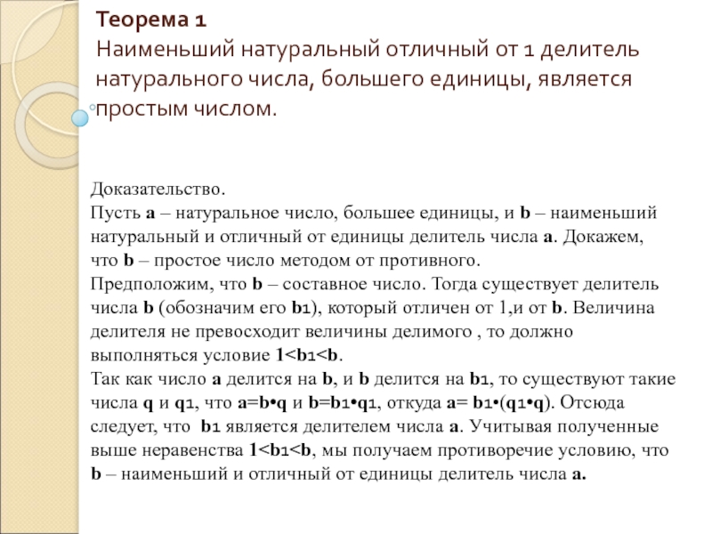 Предположим, что b – составное число. Тогда существует делитель числа b (обозначим его b1), который отличен от 1,и от b. Величина делителя не превосходит величины делимого , то должно выполняться условие 1