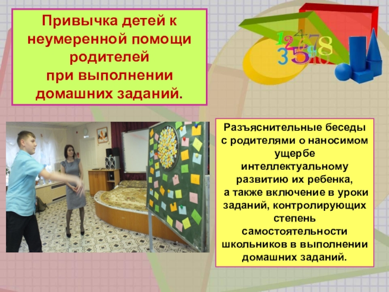 Разъяснительные беседы с родителями о наносимом ущербе интеллектуальному развитию их ребенка,