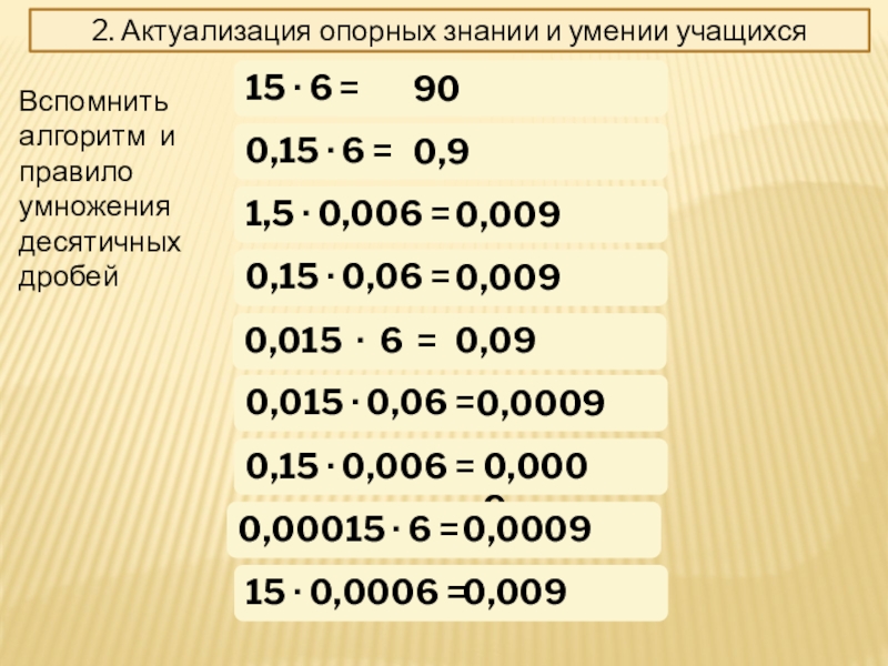Вспомнить алгоритм и правило умножения десятичных дробей