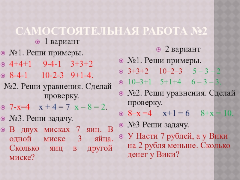 7-х=4 х + 4 = 7 х – 8 = 2.