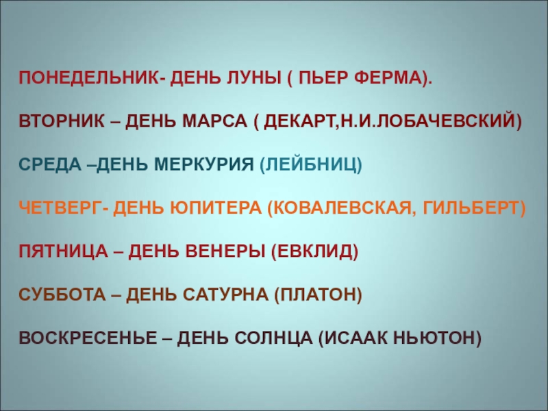 Труды по алгебре, математическому анализу, теории вероятностей, механике, физике и астрономии.