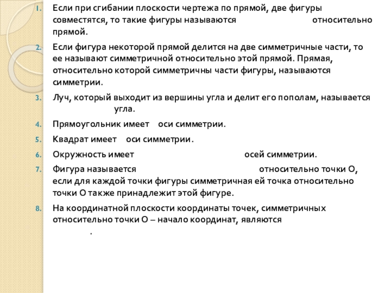 Слайд 4Если при сгибании плоскости чертежа по прямой, две фигуры совместятся, то