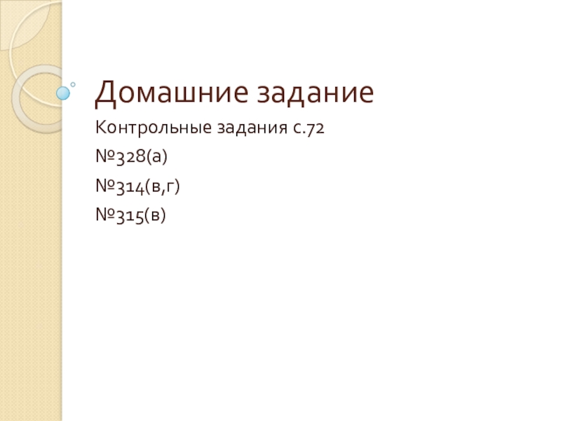 Домашние заданиеКонтрольные задания с.72№328(а)№314(в,г)№315(в)
