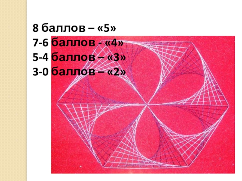 8 баллов – «5»7-6 баллов - «4»5-4 баллов – «3»3-0 баллов – «2»