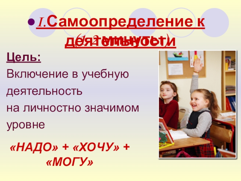Слайд 10I.Самоопределение к деятельности