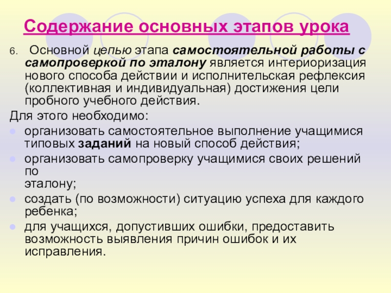 6. Основной цепью этапа самостоятельной работы с
