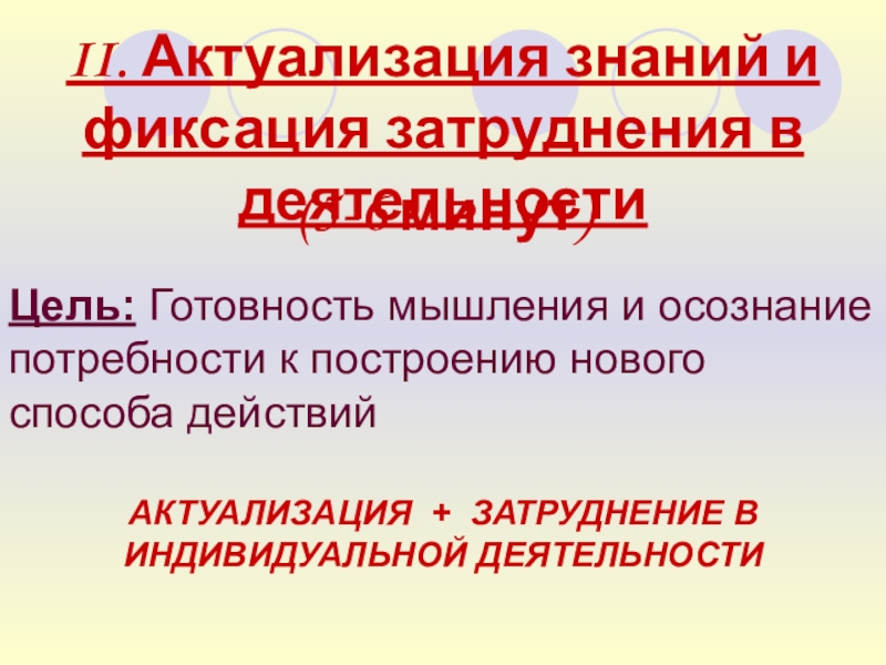 Слайд 12II. Актуализация знаний и фиксация затруднения в деятельности