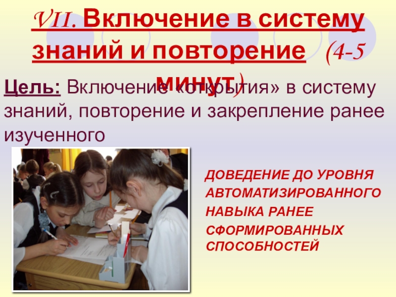 Слайд 24VII. Включение в систему знаний и повторение (4-5 минут)