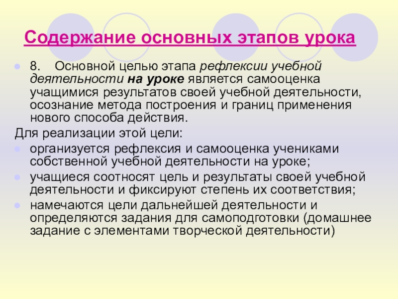 8. Основной целью этапа рефлексии учебной деятельности на уроке
