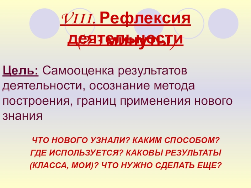 Слайд 26VIII. Рефлексия деятельности