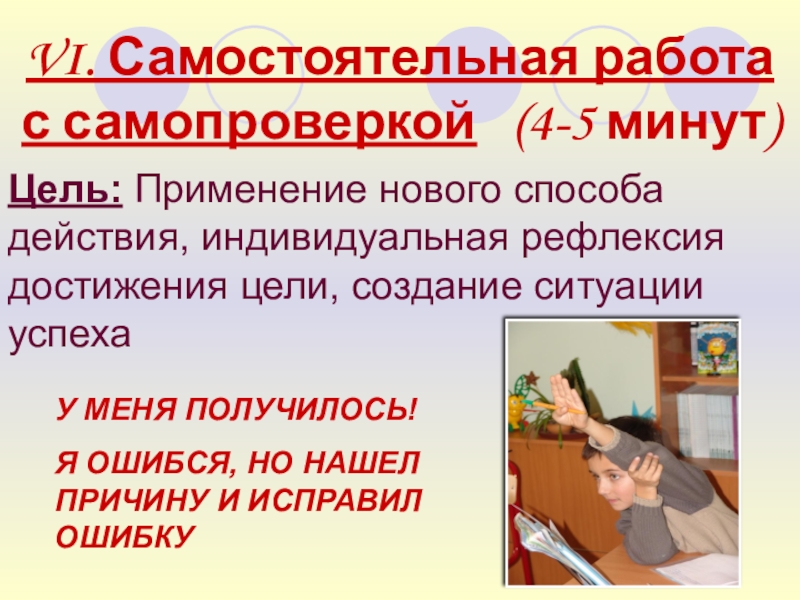 Слайд 22VI. Самостоятельная работа с самопроверкой (4-5 минут)