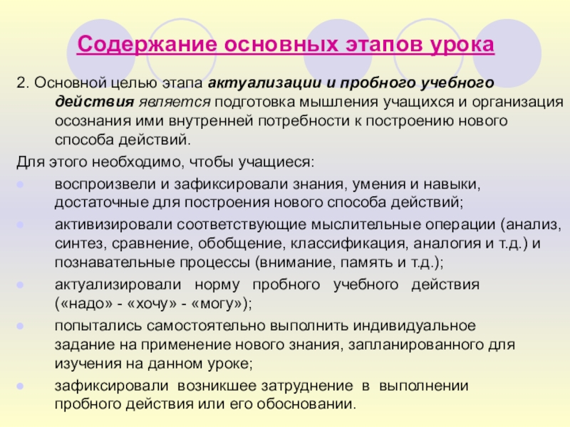 2. Основной целью этапа актуализации и пробного учебного