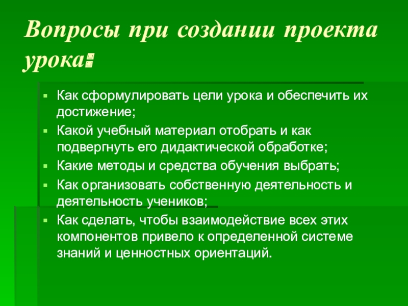Как сделать, чтобы взаимодействие всех этих компонентов привело к определенной системе знаний и ценностных ориентаций.