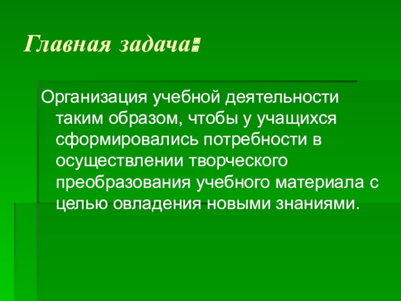 в осуществлении творческого преобразования учебного материала с целью овладения новыми знаниями.