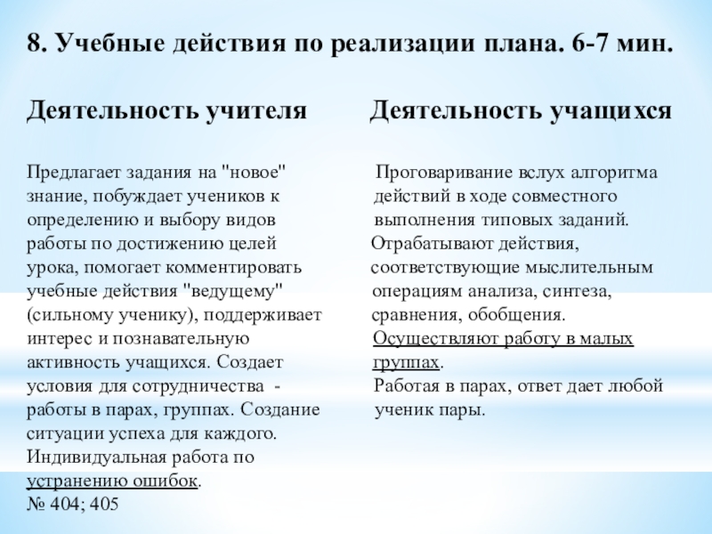 Слайд 358. Учебные действия по реализации плана. 6-7 мин.