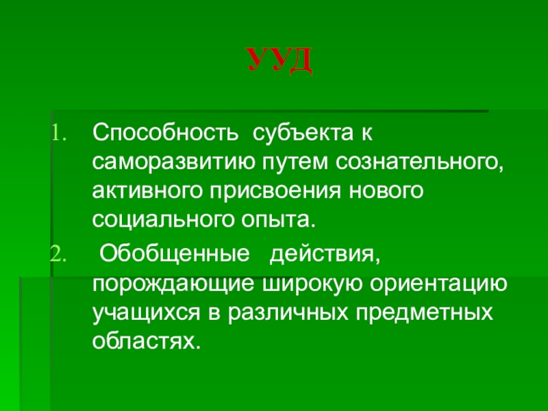 Обобщенные действия, порождающие широкую ориентацию учащихся в различных предметных областях.