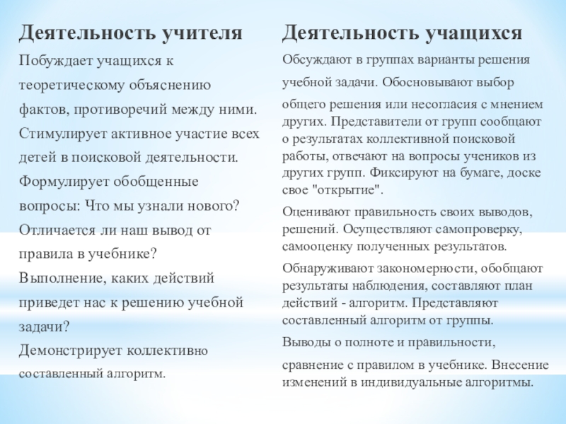 Предлагает задания на "новое" Проговаривание вслух алгоритма