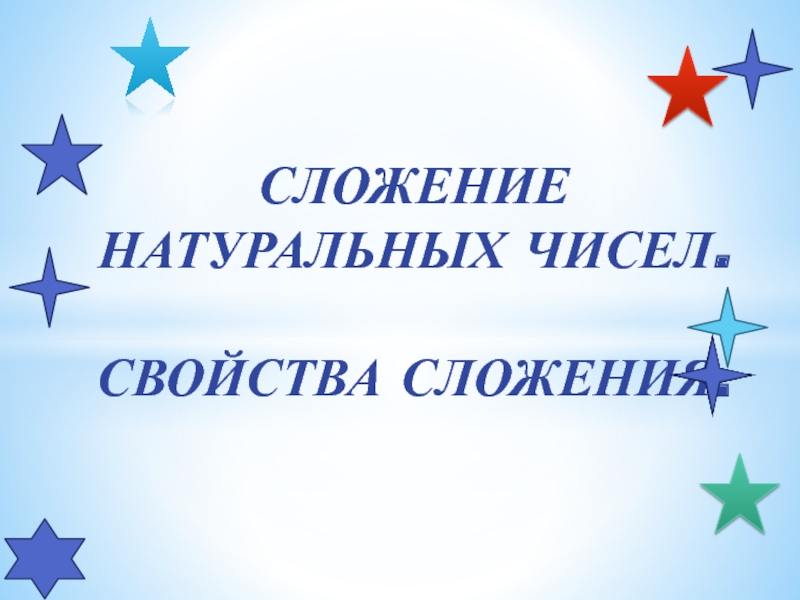 Слайд 3СЛОЖЕНИЕ НАТУРАЛЬНЫХ ЧИСЕЛ. СВОЙСТВА СЛОЖЕНИЯ.