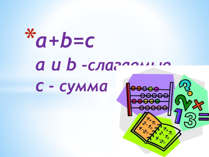 Слайд 4a+b=c a и b –слагаемые, с - сумма