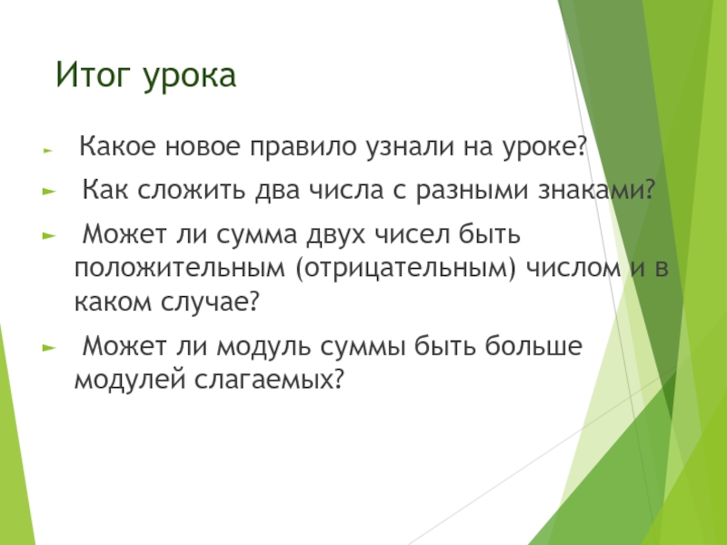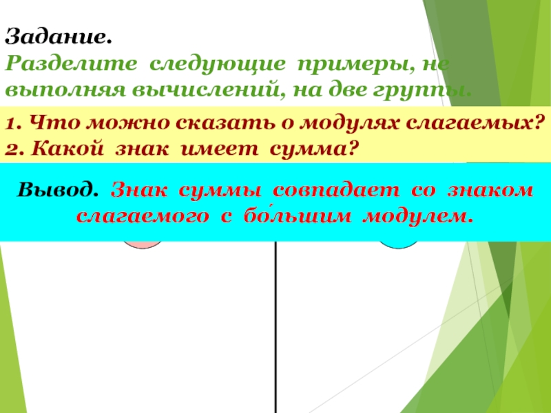 слагаемого с бо́льшим модулем.