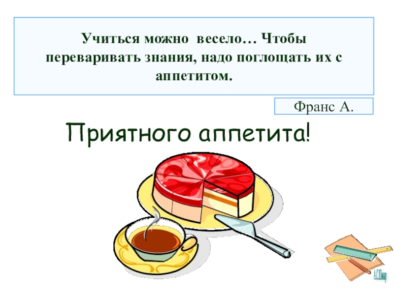 Приятного аппетита!Учиться можно весело… Чтобы переваривать знания, надо поглощать их с аппетитом.Франс А.