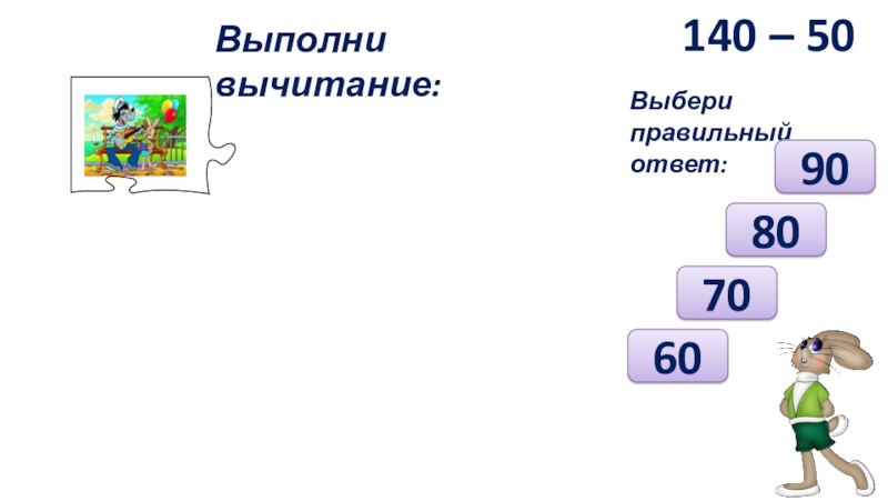 Выполни вычитание:140 – 50Выбери правильный ответ:70809060