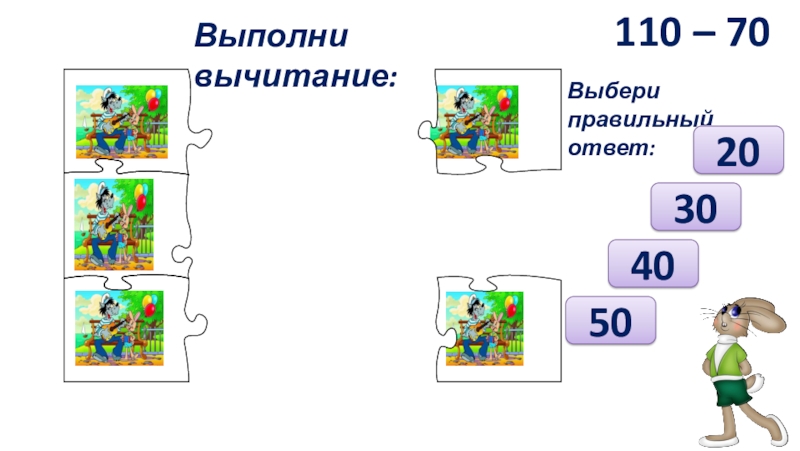 Выполни вычитание:110 – 70Выбери правильный ответ:20304050