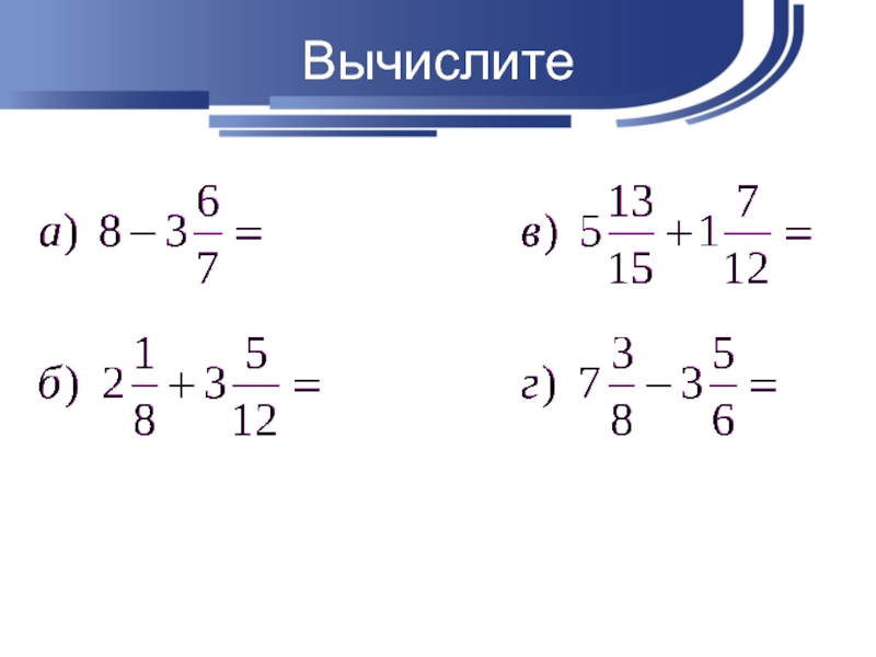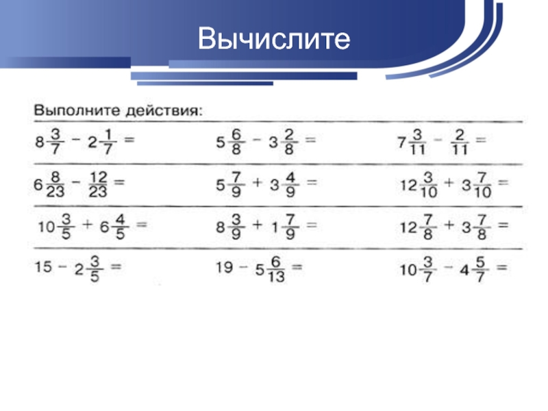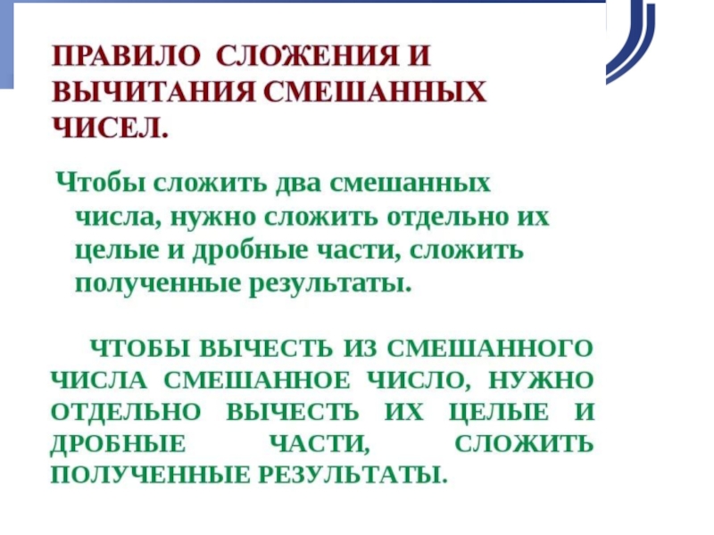 Слайд 1Сложение и вычитание смешанных чисел 5 класс