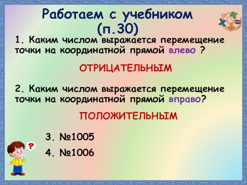 2. Каким числом выражается перемещение точки на координатной прямой вправо?