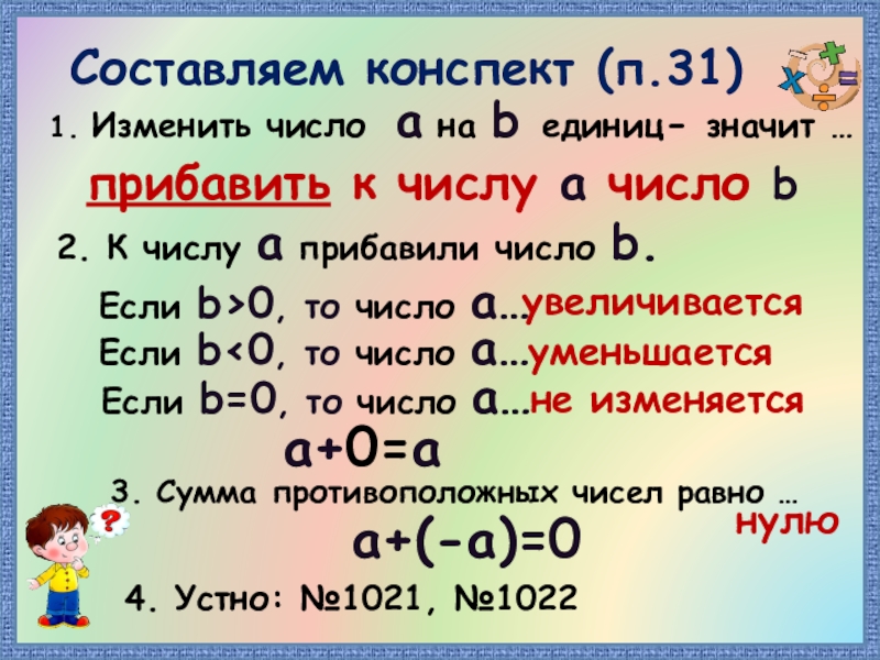 3. Сумма противоположных чисел равно …