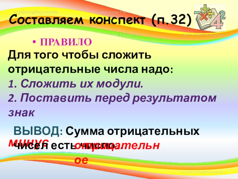 ВЫВОД: Сумма отрицательных чисел есть число…