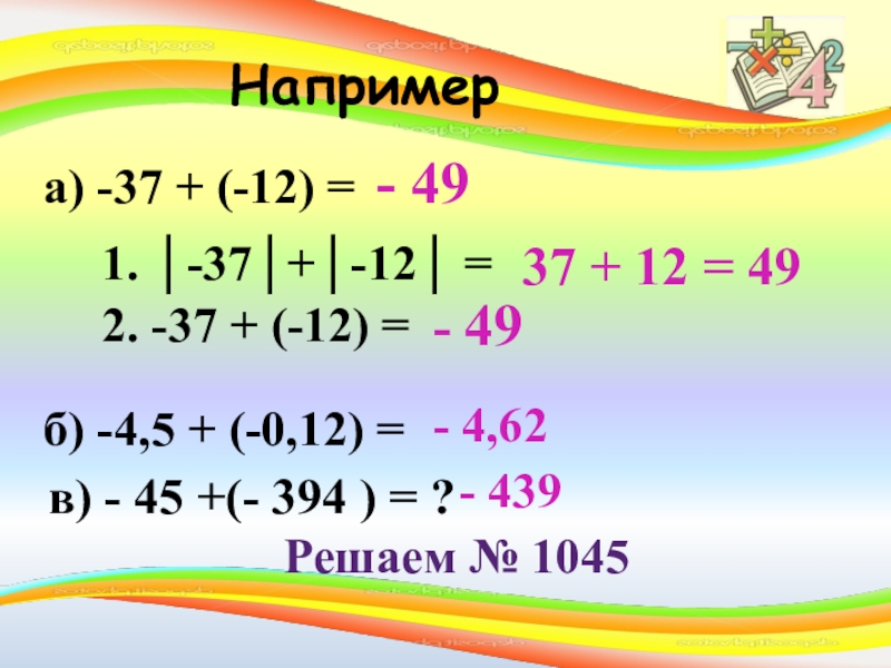 в) - 45 +(- 394 ) = ?