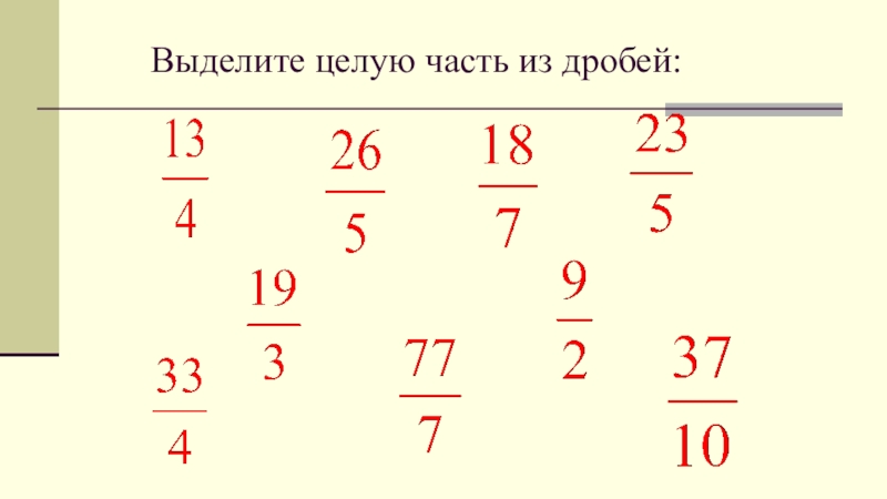 Слайд 12Чтобы из неправильной дроби выделить целую часть, надо:
