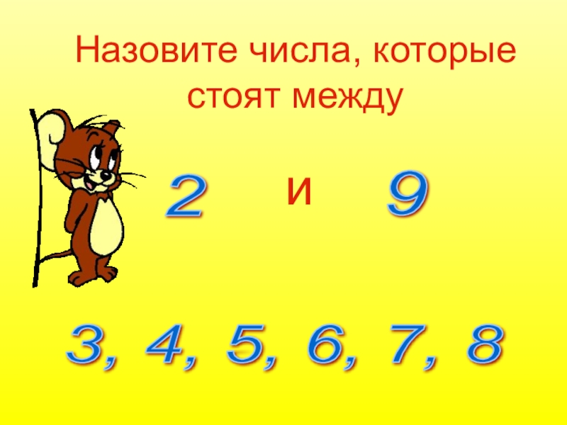 Назовите числа, которые стоят между   и2 9 3, 4, 5, 6, 7, 8